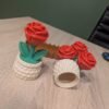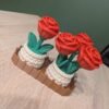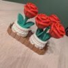 Effet Laine : Les pots, les feuilles vertes et les pétales rouges reproduisent fidèlement les mailles d’un tricot douillet pour un rendu ultra-cocooning.