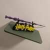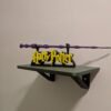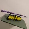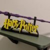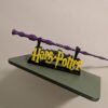 Le Présentoir : Un socle robuste arborant le célèbre lettrage « Harry Potter » en jaune éclatant sur une base noire, conçu pour accueillir la baguette à la perfection.